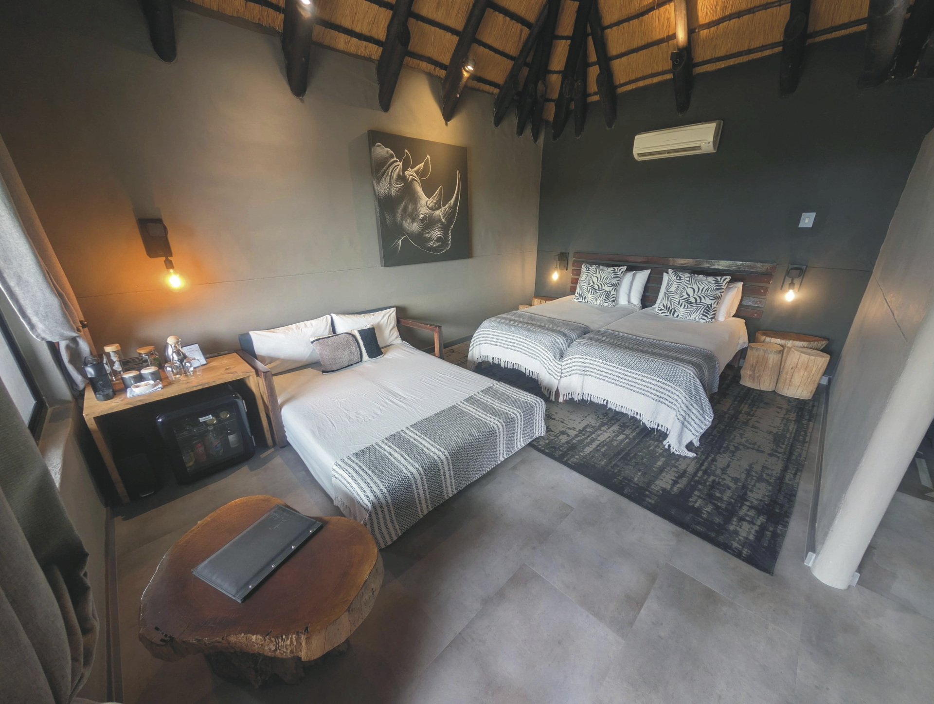 Die insgesamt 20 Standardzimmer verfügen jeweils über ein geräumiges Bad, Safe, Klimaanlage/Heizung, Ventilator, Tee-/Kaffeezubereiter, Minibar und eine Terrasse mit wunderschönem Ausblick. Es befinden sich immer zwei Standardzimmer in einem riedgedeckten Bungalow. Für Familien gibt sowohl Dreibettzimmer als auch Familienzimmer mit einer zusätzlichen Schlafcouch für max. 2 Kinder.