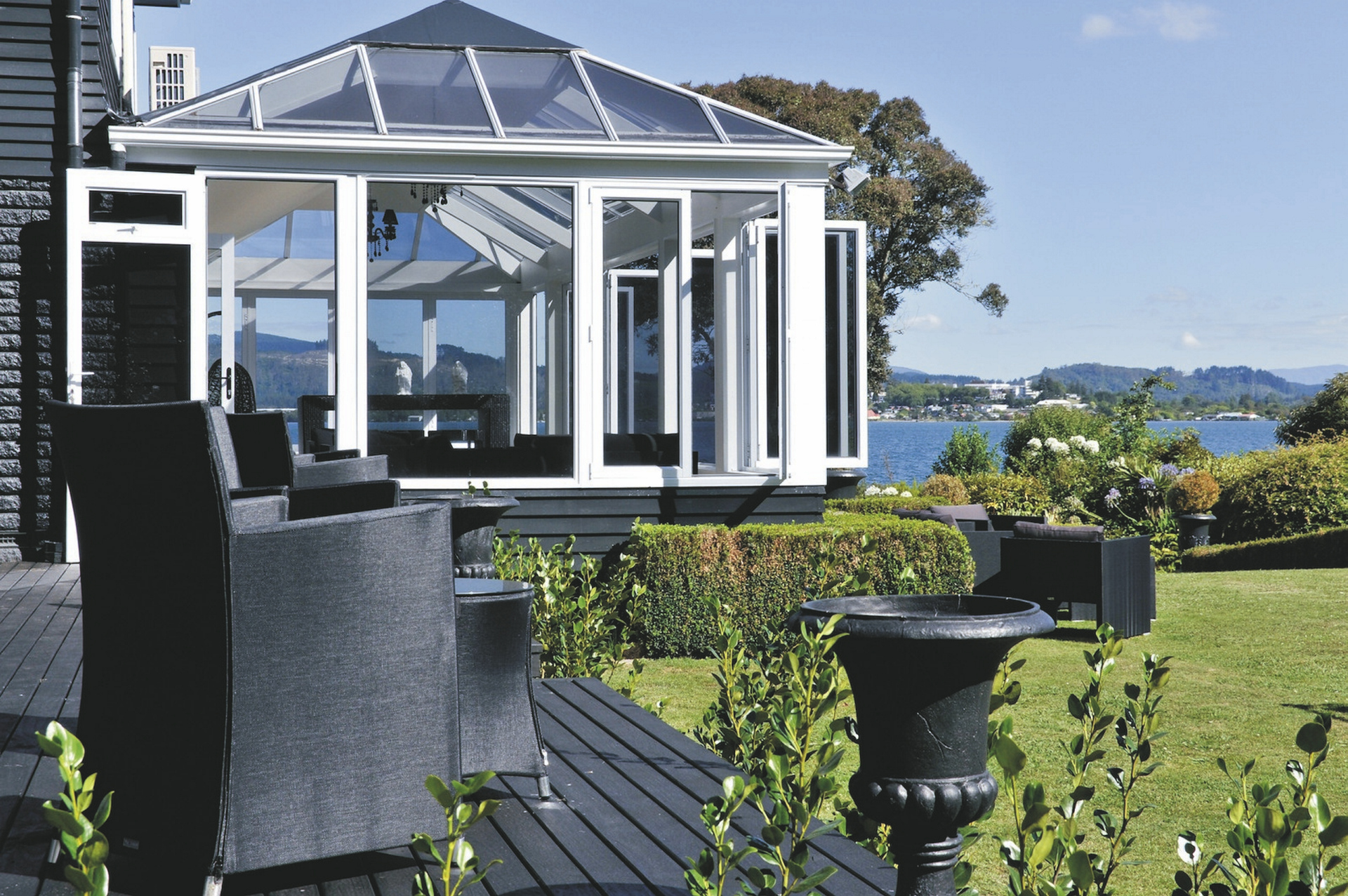 Das Black Swan vereint klassische Raffinesse und zeitgenössischen Chic zu einem durch und durch ansprechenden und einzigartigen Hotel mit sehr persönlichem Service. Auf einem Hektar Grundstück finden Sie Rosengärten, weitläufige Rasenflächen, einen Pool, Sauna, Privatsteg, Heli-Pad.Genießen Sie den Panoramablick auf den See während Ihres Essens. Die Küchenchefs zaubern jeden Abend Gerichte auf Sterneniveau - ein Erlebnis das Ihre Sinne begeistern wird. WLAN kostenlos.