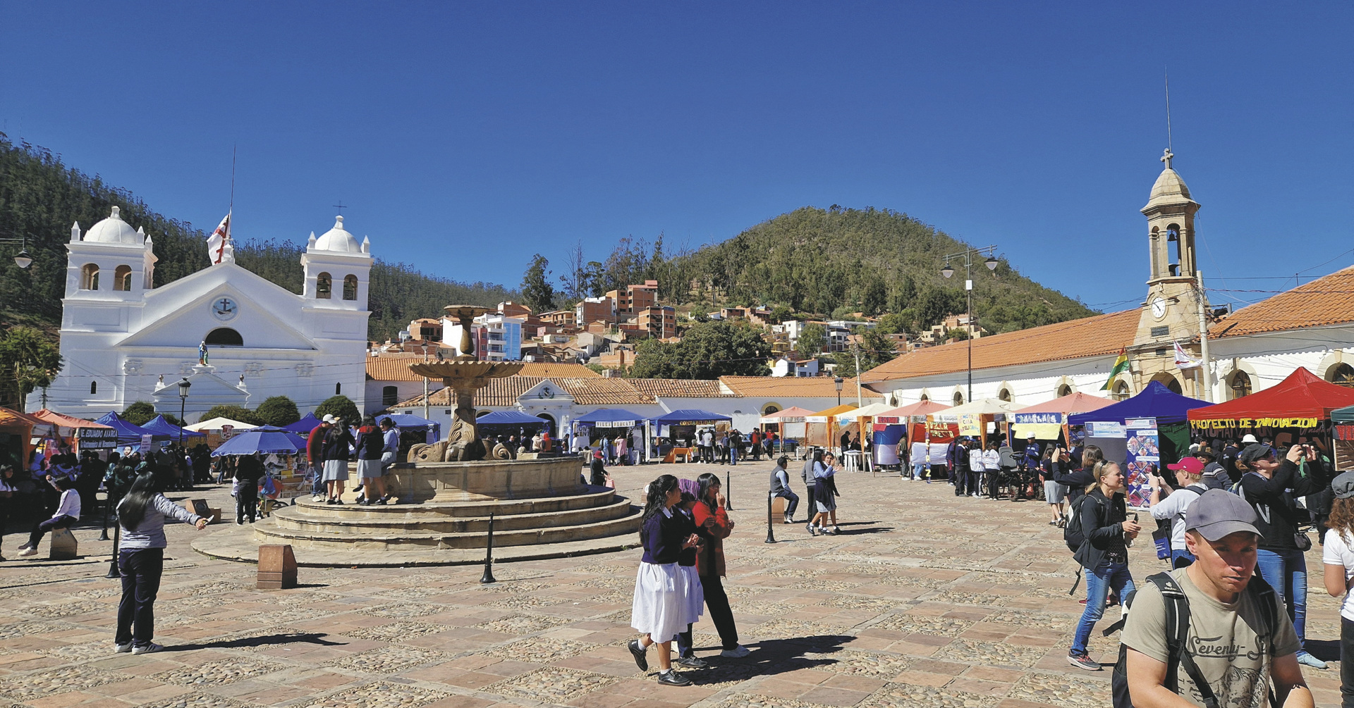 Sucre – Tarabuco (F/M).Sie fahren in den kleinen Ort Tarabuco zum Sonntagsmarkt, wo die Bewohner der Region in traditioneller Kleidung ihre Waren anbieten und ihre Wocheneinkäufe tätigen. Bummeln Sie durch die engen Gassen und genießen Sie die ganz besondere Atmosphäre. Nach dem Mittagessen Rückfahrt nach Sucre und Rest des Tages zur freien Verfügung.