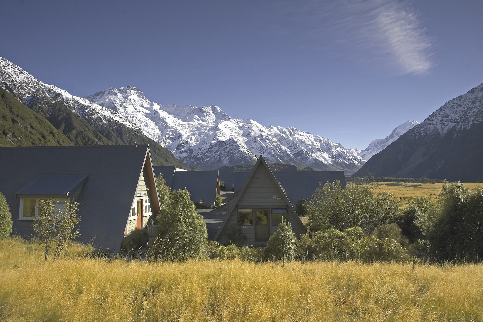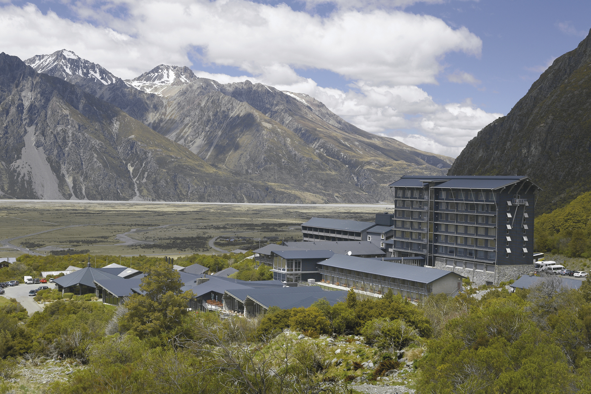 Das Hotel befindet sich am Fuße von Neuseelands höchstem Berg, Mount Cook, direkt im Nationalpark.