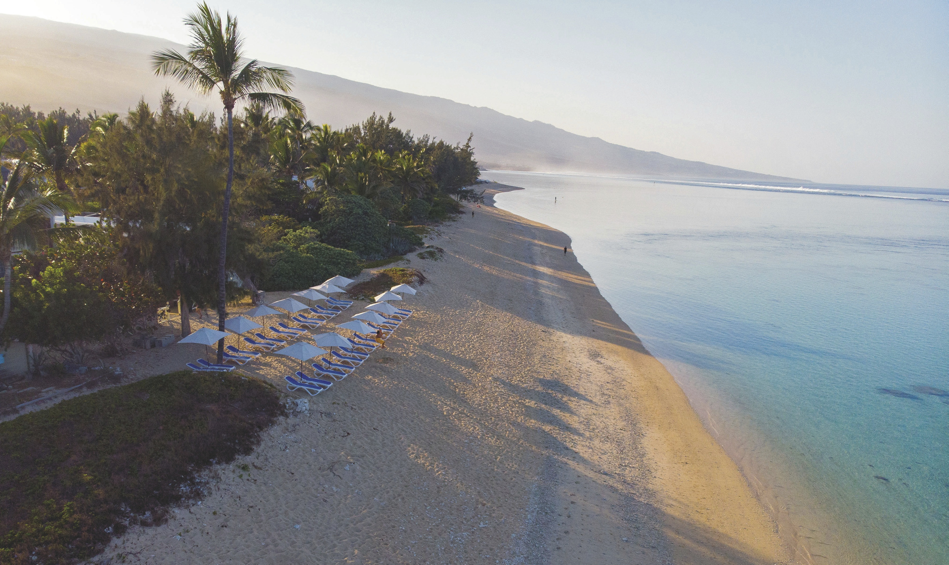 Umgeben von herrlich grüner Landschaft und Kokospalmen direkt am Sandstrand der Lagune von l'Ermitage-Les-Bains. Diese ist aufgrund ihrer reichhaltigen Flora und Fauna geschützt und das farbenprächtige Korallenriff ist ideal zum Schnorcheln.