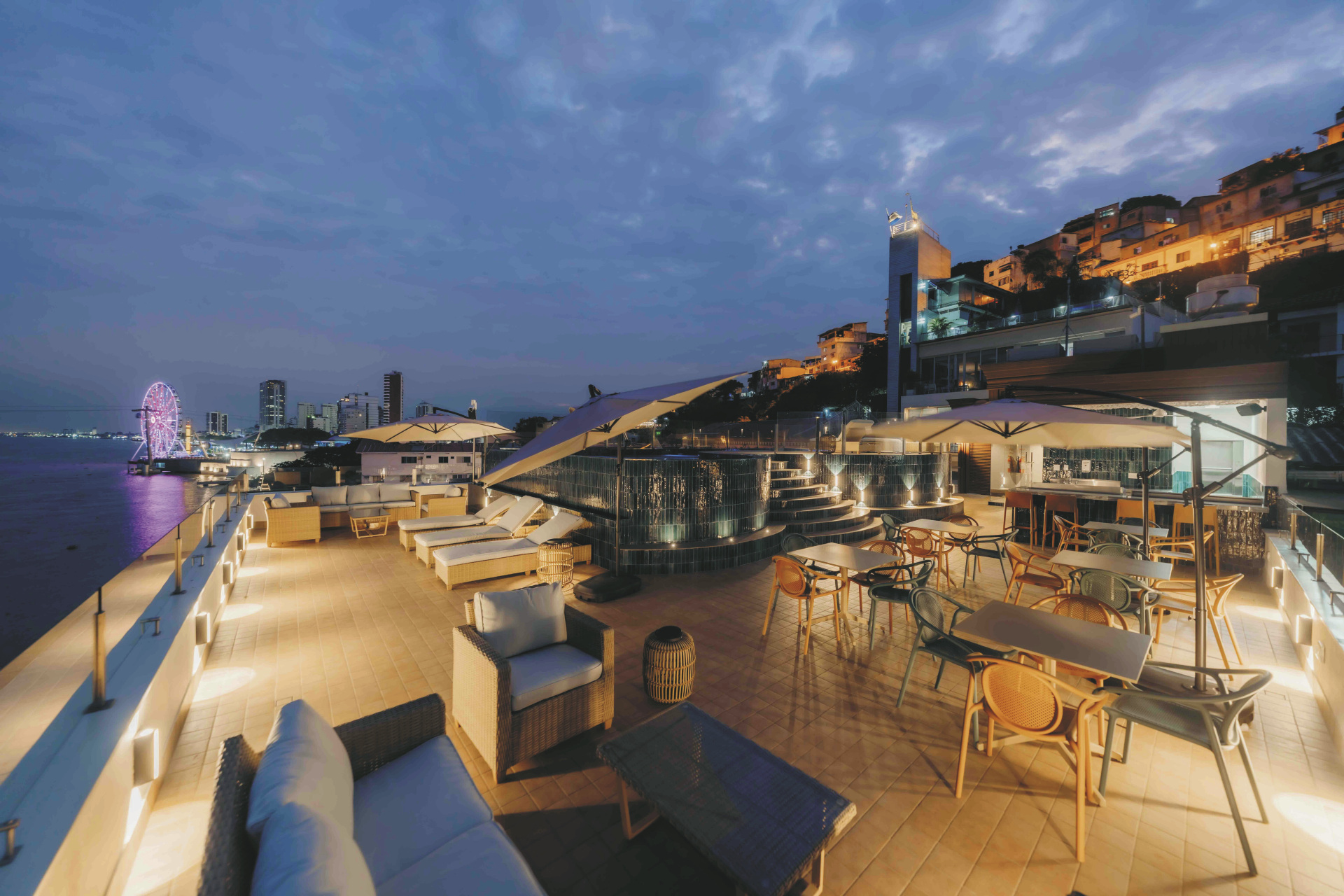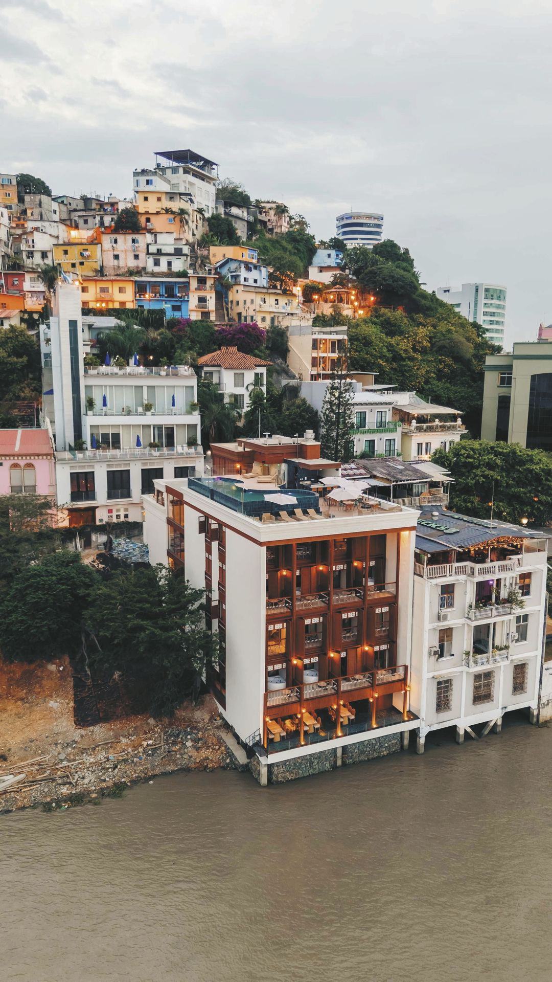 Das Hotel Río Guayas befindet sich in einer privilegierten Lage in Guayaquil, direkt am historischen Stadtteil Cerro Santa Ana. Von hier aus erreichen Gäste in wenigen Gehminuten die beliebte Uferpromenade Malecón 2000, die mit Grünanlagen, Restaurants und kulturellen Attraktionen zu den bekanntesten Sehenswürdigkeiten der Stadt zählt.