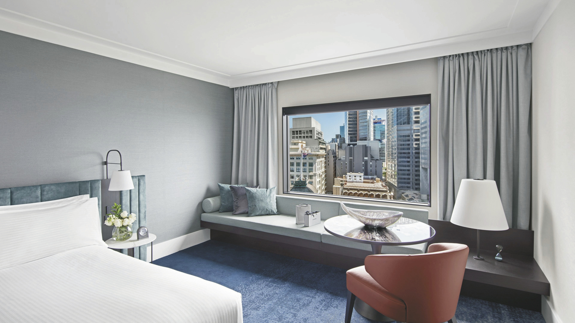 509 luxuriöse Zimmer und Suiten. Alle Zimmer sind klimatisiert und komfortabel ausgestattet u.a. mit Bad mit begehbarer Dusche, Bademänteln, Slippern und Fön, TV, Soundsystem, Zimmersafe, Minibar, Tee-/Kaffeekochgelegenheit, einem Schreibtisch sowie einer bequemen Sitzbank am Fenster. Wahlweise mit Blick auf die Stadt, die Hafenbrücke oder das Opernhaus.