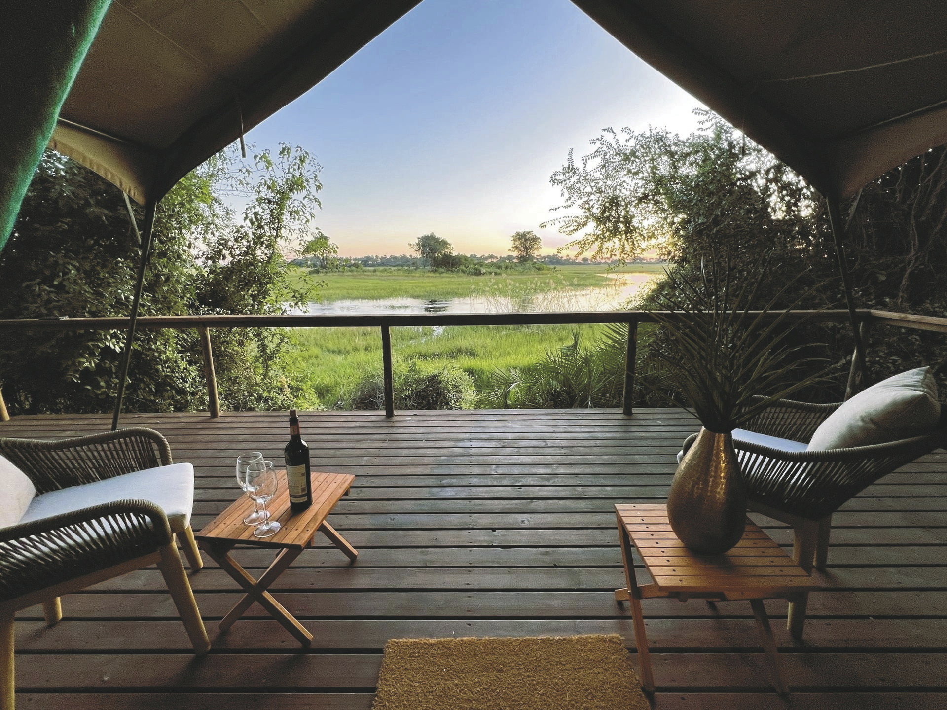 Ein weiterer landschaftlich beeindruckender Flug bringt Sie von Khwai zum abgelegenen Kala Camp am Okavango Panhandle. Diese Region ist geprägt von breiten Wasserarmen, üppiger Vegetation und einer faszinierenden Vogelwelt – ein Paradies für Naturliebhaber.