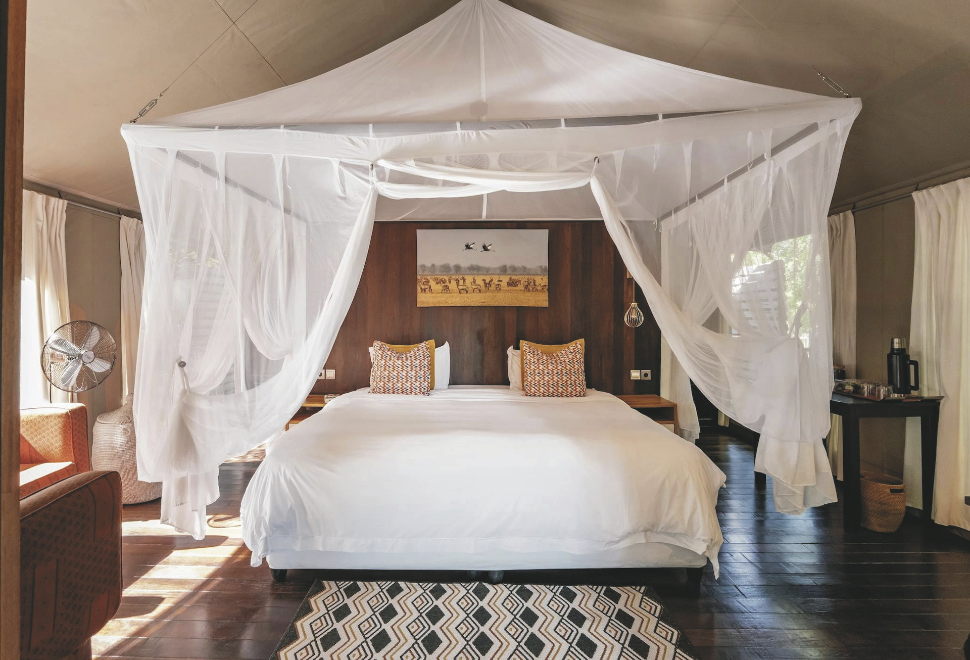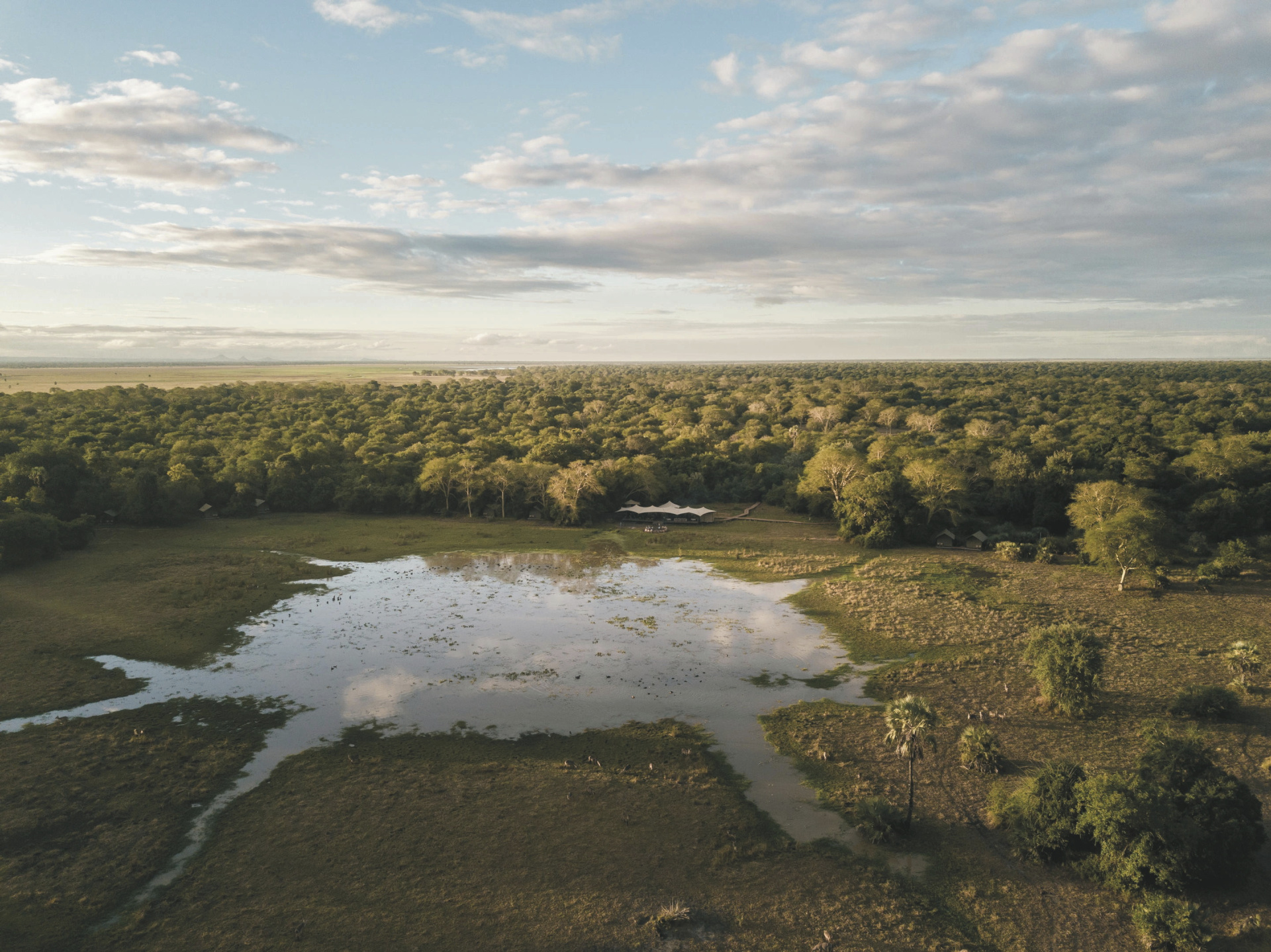 Flug mit Safaris Air um 13.45 Uhr von Beira zum Gorongosa Nationalpark, anschließend Transfer zum Camp. Mit nur 6 auf Holzplattformen errichteten Zelten bietet das Camp am Mussicadzi Fluss eine familiäre Atmosphäre. Am späten Nachmittag starten Sie mit einem Ranger des Camps zu einer ersten geführten Pirschfahrt durch den Nationalpark.