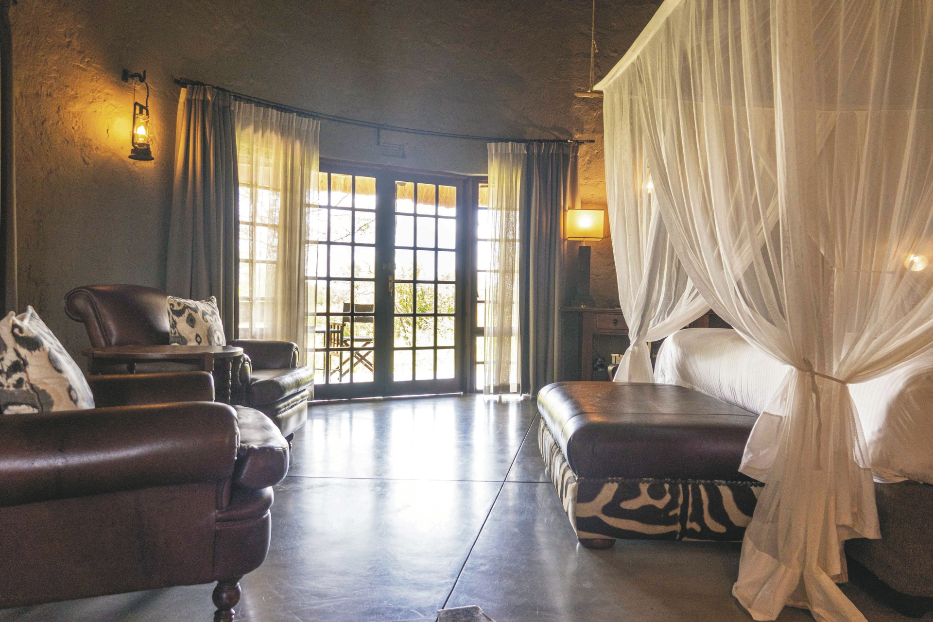 Ein afrikanischer Traum, der von einer außergewöhnlichen Landschaft, einer authentischen Atmosphäre und herzlicher Gastfreundschaft geprägt ist. Die Kunstwerke der Besitzerin erwecken die Lodge zum Leben und tragen zur Attraktivität bei. Das Hauptgebäude mit seiner Lounge ist offen und einladende dekoriert, hier finden Sie kostenloses WLAN. Die Mahlzeiten nehmen Sie entweder im Restaurant, auf der Terrasse, abends in der Boma oder im Busch rund um ein knisterndes Lagerfeuer ein. Dazu gibt es erstklassige Weine aus dem Weinkeller, die natürlich auch an der Bar ausgeschenkt werden. Von Pool und Sonnenterrasse, aber auch von der Aussichtsterrasse hat man einen wunderbaren Blick in die Landschaft und kann die umherziehenden Tiere beobachten. Eingeschlossene Aktivitäten: Pirschfahrten & Buschwanderungen. Optionale Aktivitäten: mobiler Spa für Behandlungen im Bungalow, Übernachtung unter dem Sternenhimmel im Giraffe´s Nest.