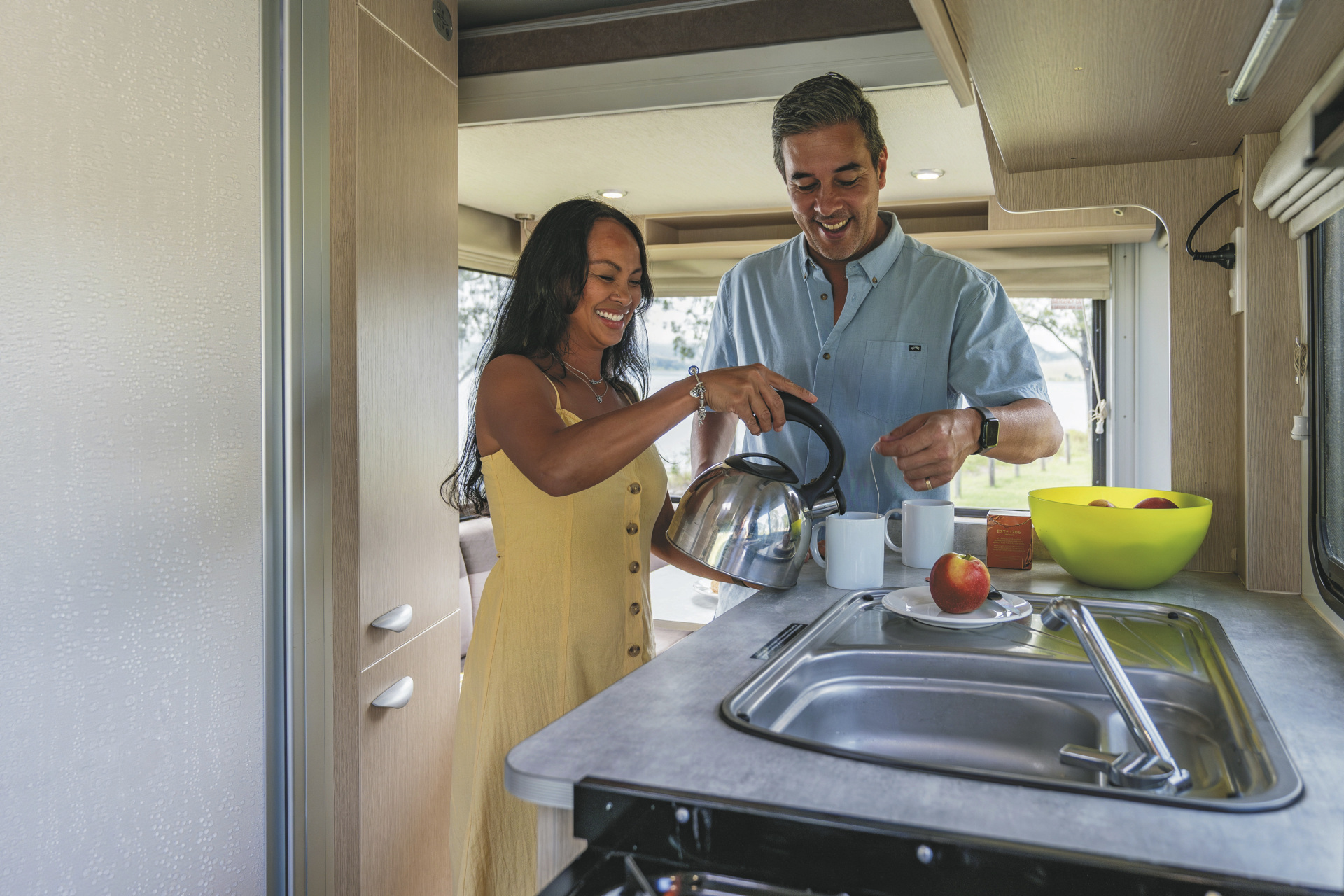 Das kleinste Maui Wohnmobil, komfortabel ausgestattet und mit einem innovativen Bettensystem. Geeignet für max. 4 Personen.
