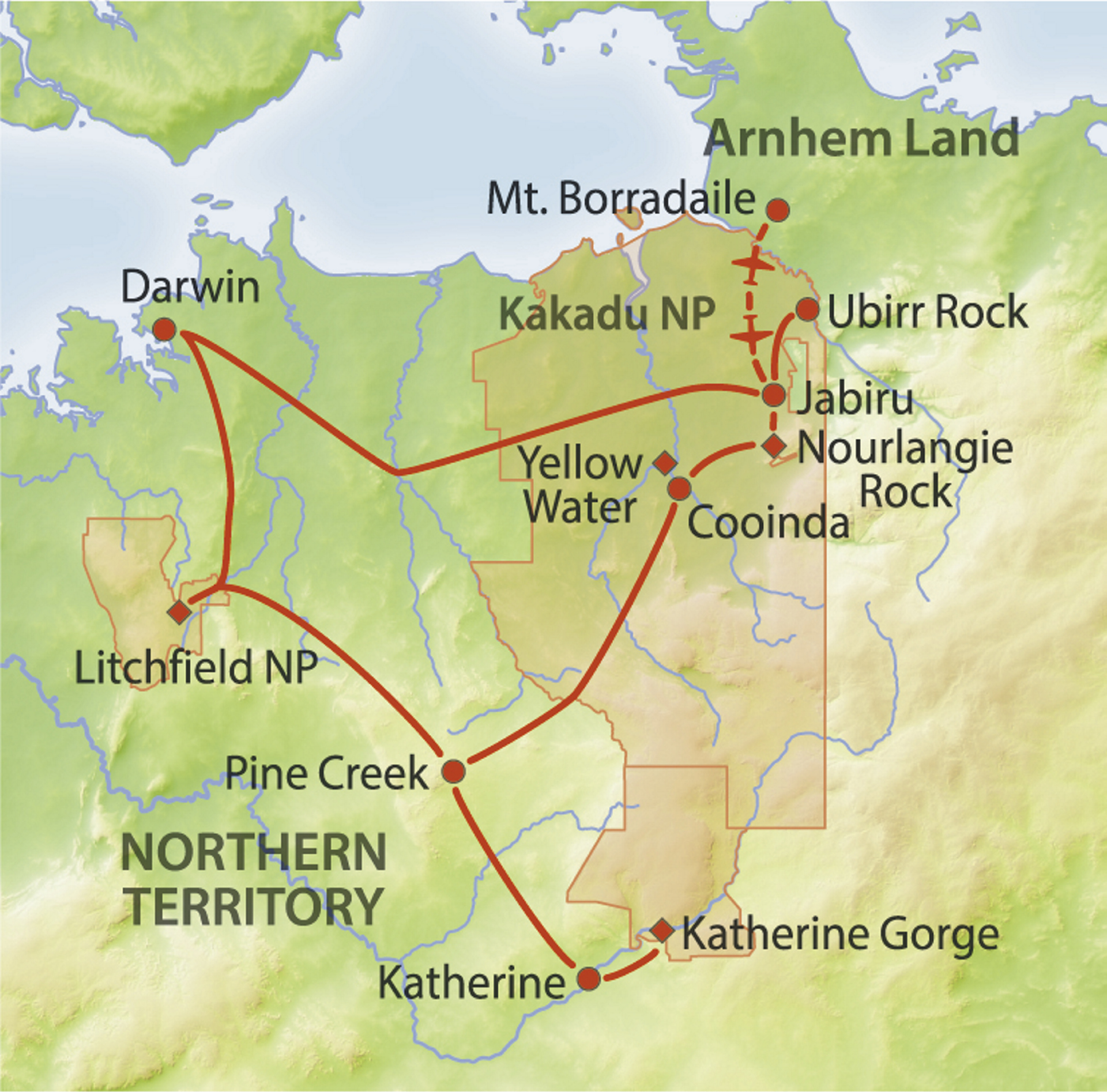 • Höhepunkte Litchfield NP, Katherine Gorge, Kakadu NP, Mt. Borradaile Safari Camp