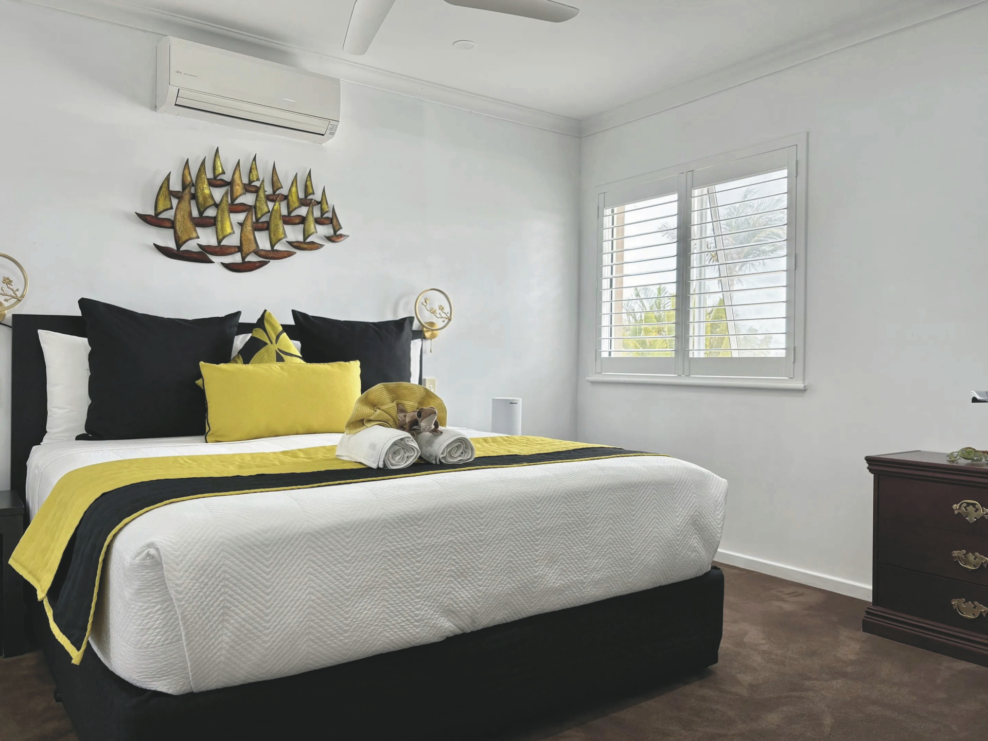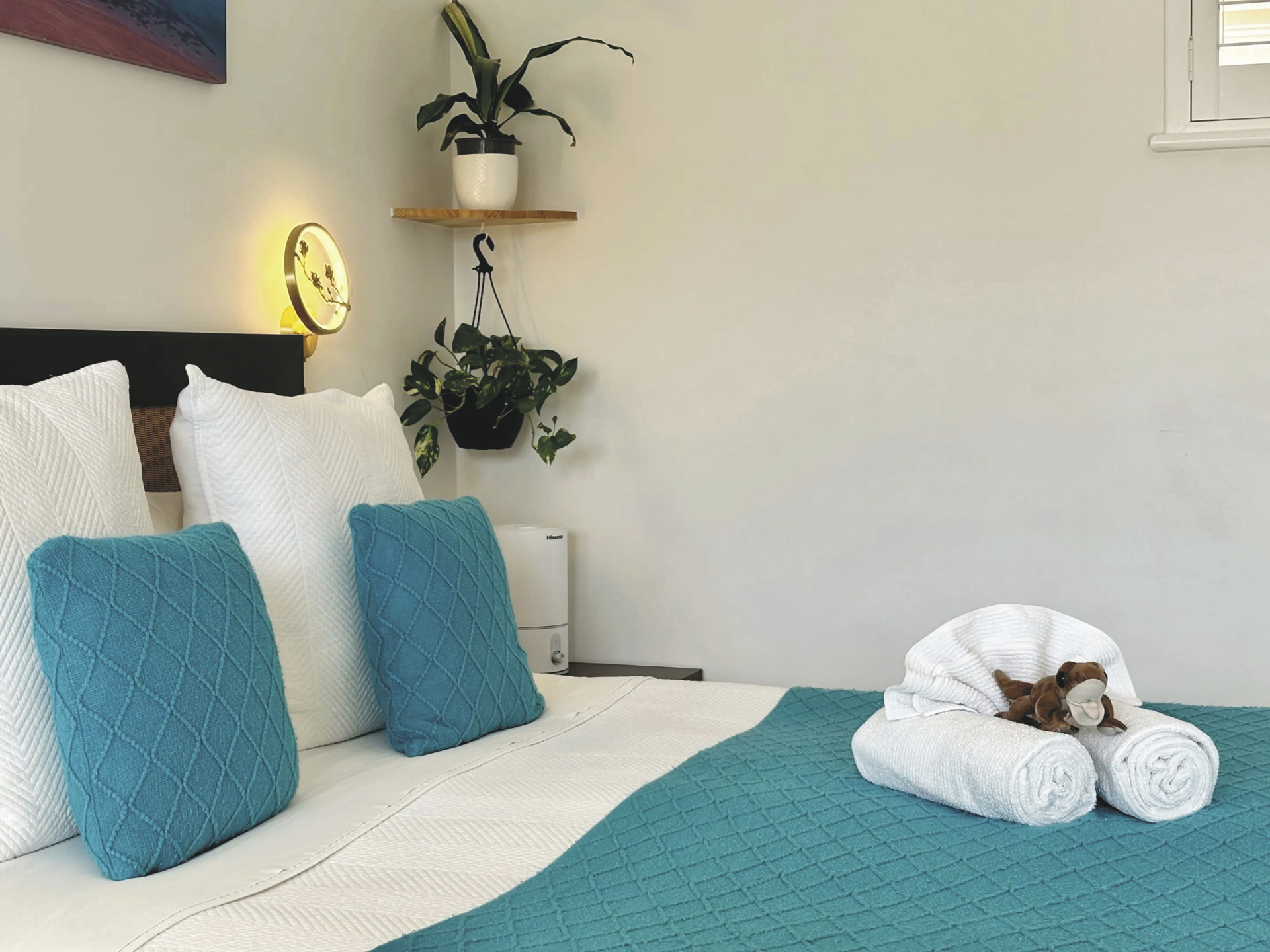 00 helle Unterkünfte in verschiedenen Kategorien, jeweils eine Mischung aus Komfort und Eleganz. Deluxe-Zimmer verfügen wahlweise über ein Doppelbett oder zwei Einzelbetten und sind ausgestattet mit Klimaanlage und Deckenventilator, Bad mit Doppeldusche, flauschigen Bademänteln und Fön, separatem WC, Kühlschrank/Minibar, Tee-/Kaffeezubereiter, Tisch und Stühle im Innenbereich sowie Zugang zur Veranda mit Sitzgelegenheiten im Freien – ideal für den Morgenkaffee oder einen Drink bei Sonnenuntergang.Das Penthouse Apartment verfügt über eine gut ausgestattete Küche, einen großzügigen Wohn-/Essbereich sowie zwei separate Schlafzimmer (1x Kingsize- und 1x Queensize-Doppelbett). Das Bad ist mit Wanne, Dusche sowie Waschmaschine/Trockner ausgestattet, das WC ist separat. Weiterhin gibt es zwei Balkone, einmal mit Blick auf die Stadt, einmal sehr geräumig mit BBQ, Esstisch und Stühlen.