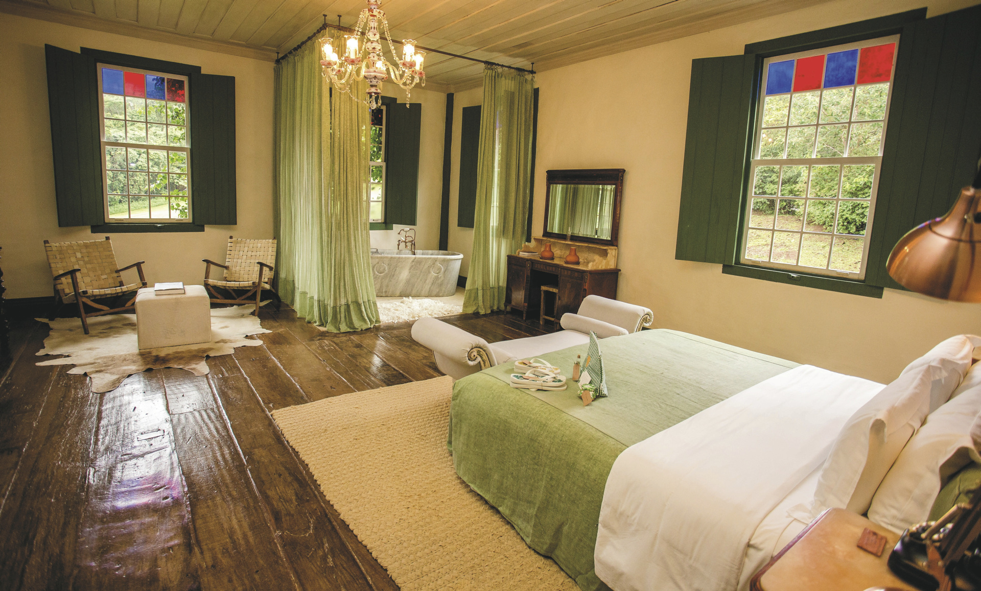 Casa Viradouro, (abgelegen), 150 m², bis zu 5 Erwachsene. Drei Suiten, die Hauptsuite mit Badewanne, Fußbodenheizung und Handtuchwärmer, die zweite Suite für 2 Personen und die dritte mit thematischer Einrichtung und Kindermöbeln, bietet Platz für bis zu 1 Erwachsenen oder 2 Kinder. Casa Viradouro liegt 2 km von der Engenho Lodge und 7 km vom Dorf Ibiti entfernt. Anfahrt mit dem Auto oder Hubschrauber. Private Vermietung – Gäste zahlen 50 % der Kosten für unbelegte Zimmer.
