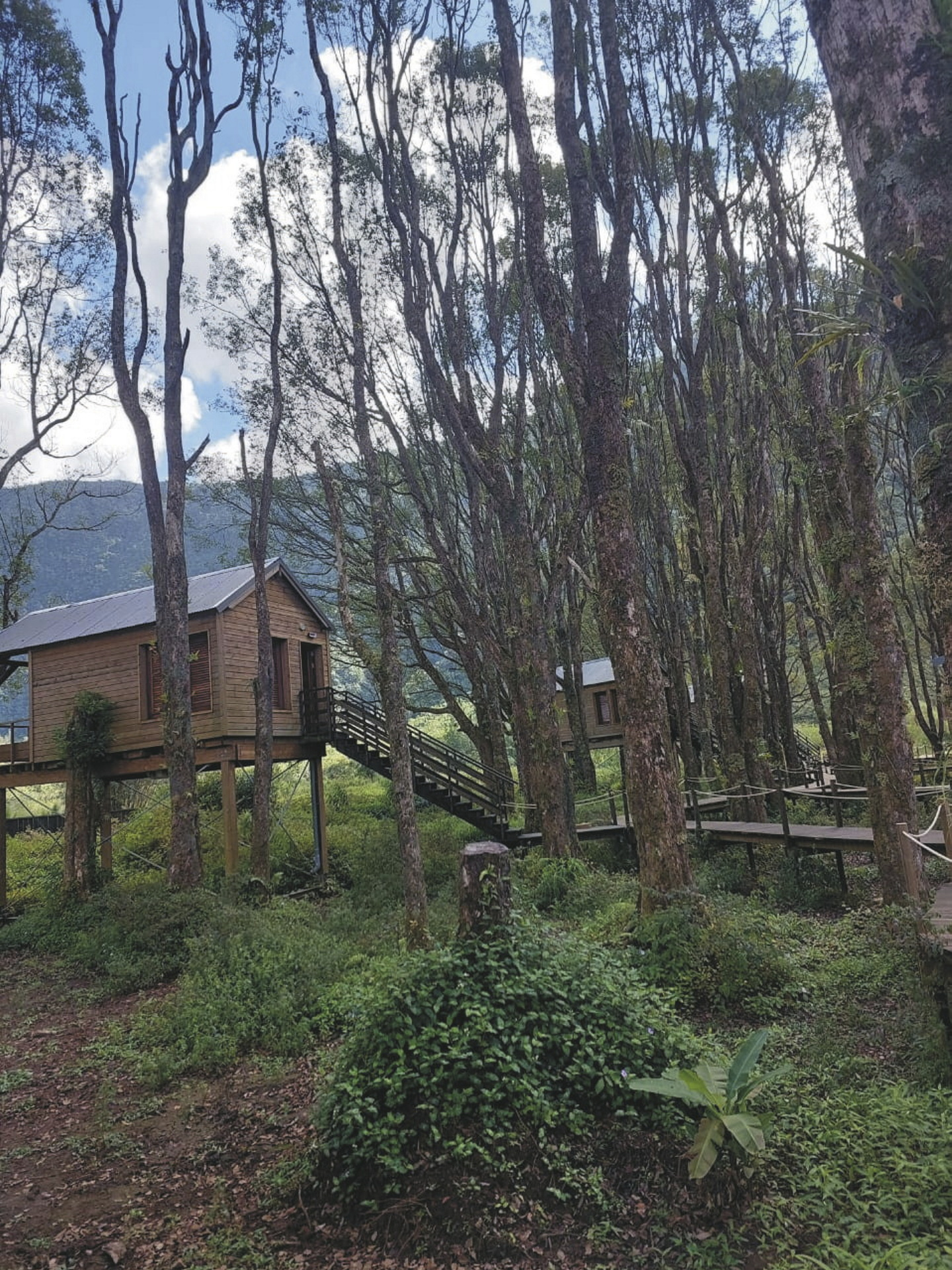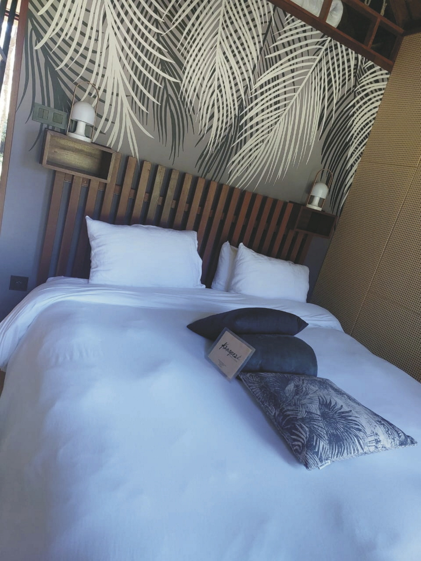 5 voll ausgestattete Baumhäuser, eingebettet inmitten eines zauberhaften Waldes mit einem atemberaubenden Blick. Jede Hütte trägt den Namen eines Baumes, der für eine Region auf La Réunion symbolisch ist. 3 Standard-Hütten (26 m²) und 2 Superior-Hütten ( 36 m²) verfügen über 1 Kingsize-Bett und 1 bzw. 2 (Superior) Einzelbett(en) 190 x 90 cm im Zwischengeschoss, Badezimmer mit ebenerdiger Dusche und separatem WC sowie möblierte Außenterrasse. Alle Gebäude sind über Pontons und Stege (1 m hoch) zugänglich.