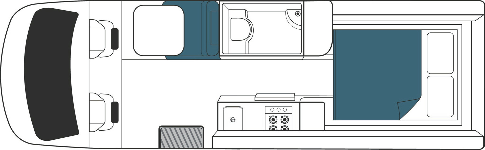 • 2 Sitzplätze in Fahrerkabine (zum Wohnbereich drehbar)
