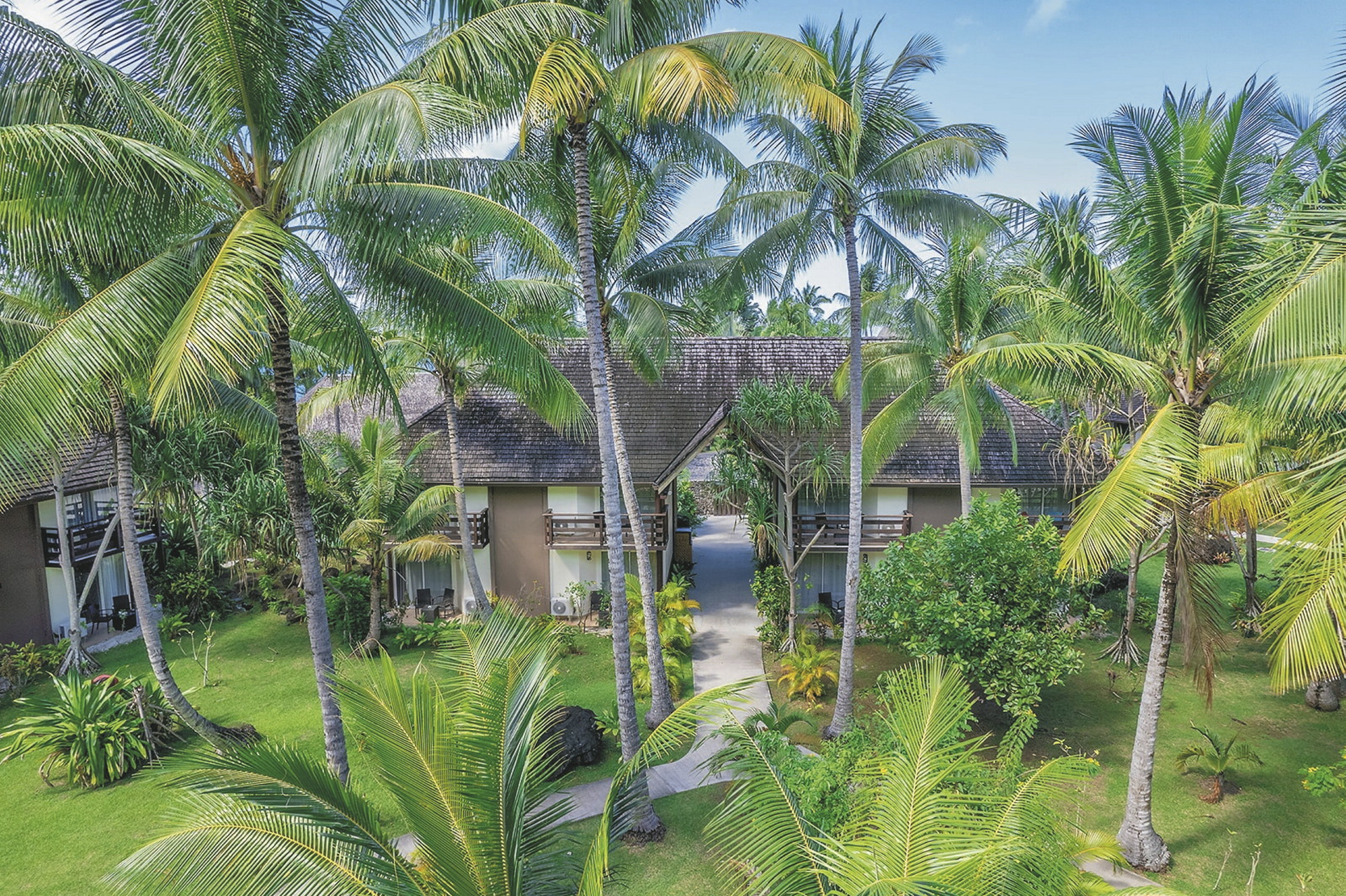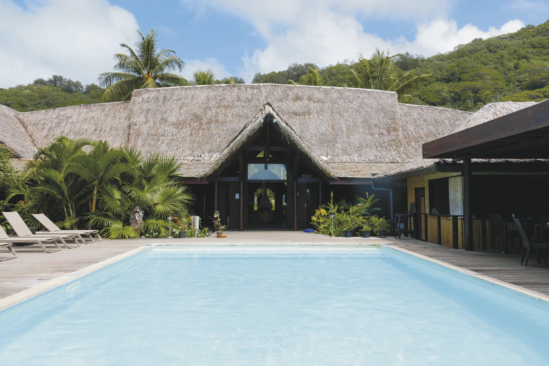 Im traditionellen Stil erbaute Anlage in einem großen tropischen Garten, an einem der schönsten weissen Sandstrände. Das Restaurant mit Bar und Loungebereich, die Rezeption sowie der Infinity Pool, mit Blick auf vorgelagerte Motus , befinden sich am Strand. Die Zimmer befinden sich im Garten und sind von der restlichen Anlage durch eine Ringstrasse getrennt. Internet sowie Parkplätze sind kostenlos.